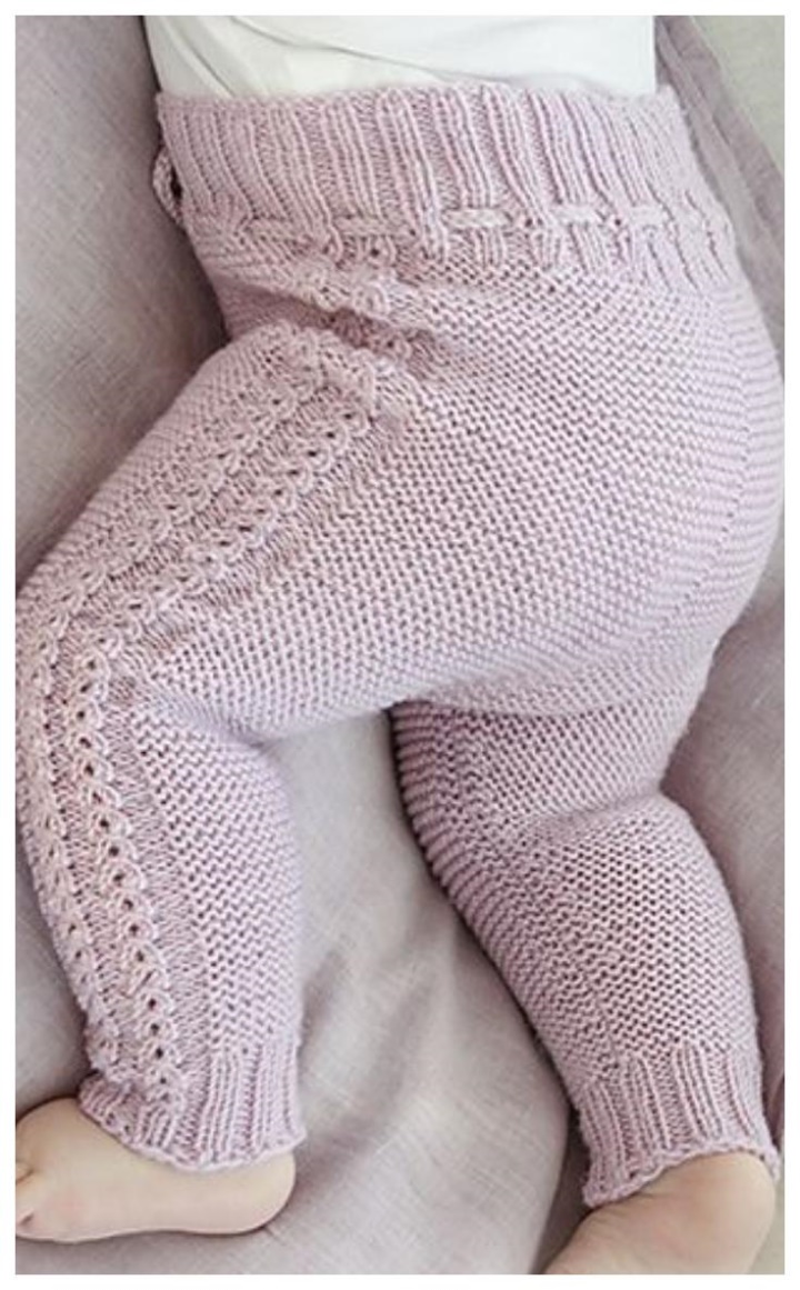 Through (15) 17-18 -21-22 (23-24) cm (all increases have already been made) in the next row, close the loops for the gusset wedge: starting from the middle of the back, close the first (6) 6-6-6-8 (8-8) p., then knit with a garter stitch until (6) 6-6-6-8 (8-8) st. is left to the front marker, and close (12) 12-12-12-16 (16-16) st., knit with a garter stitch, until (6) 6-6-6-8 (8-8) st. to the end of the row, and close the last (6) 6-6-6-8 (8-8) st. Transfer the stitches one trouser legs on the recall. thread and knit legs separately.